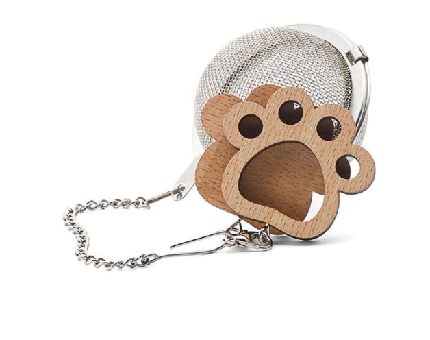Colino in acciaio inox con ciondolo in legno a forma di zampa.